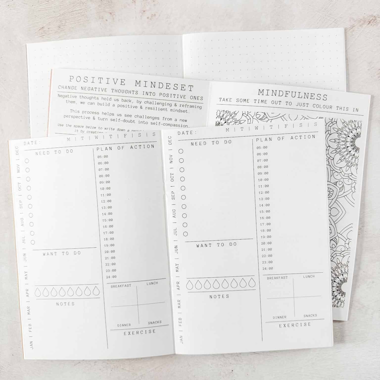 This bundle supports productivity while prioritising wellness, ensuring you stay organised while taking care of your mental and physical health. The dotted notebook adds a creative touch, allowing for flexible journaling or planning.