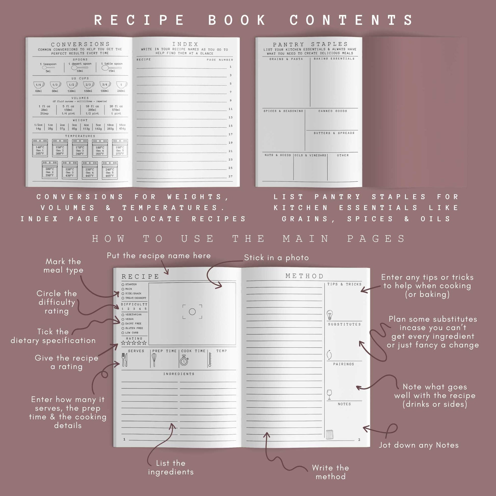 Plus, the planner includes handy features like a pantry staples list and helpful cooking conversions. Elevate your kitchen game, stay organised and make cooking a breeze with this essential recipe companion!